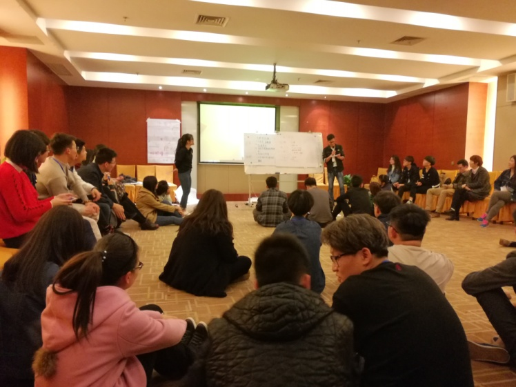 3月24日晚上,来自全国六十多所高校的青春健康工作者陆续来到南亚宾馆,简单的自我介绍之后,主持人就带领学员们进行了破冰游戏——“大风吹”、“急速六十秒”,我们之间初见的距离很快就拉近了许多。之后,按照之前的分组,各小组开始设计属于自己的logo、队名与口号。