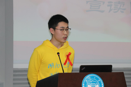 校医院副院长桂建伟在会上介绍了目前艾滋病的防治形势和此项工作的重要意义,并呼吁大学生积极参与防治艾滋病知识的宣传教育活动,要争取成为防治艾滋、关爱艾滋病人、清除歧视等理念和活动的倡导者和实践者,成为遏制艾滋病蔓延的主力军。校医院护理部主任、同伴教育同盟社团指导老师尹冬芳从统一认识、主要做法和获得荣誉等三方面对前期防艾工作进行了回顾,对即将开展的防艾宣传月系列活动进行了简要介绍,并号召在校大学生踊跃加入艾滋病防治宣传志愿者的队伍中来。校医院副院长毛旭云宣布防艾宣传月系列活动正式启动。