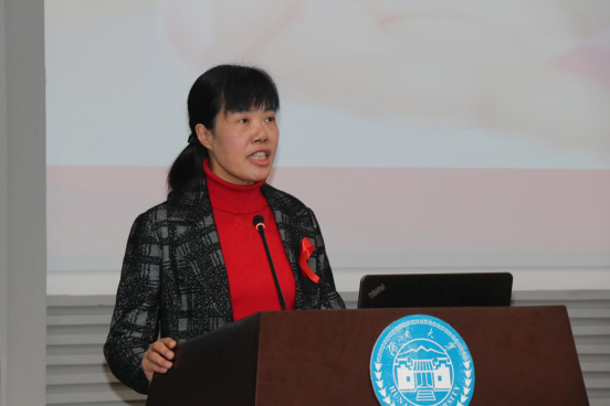 校医院副院长毛旭云宣布防艾宣传月系列活动正式启动