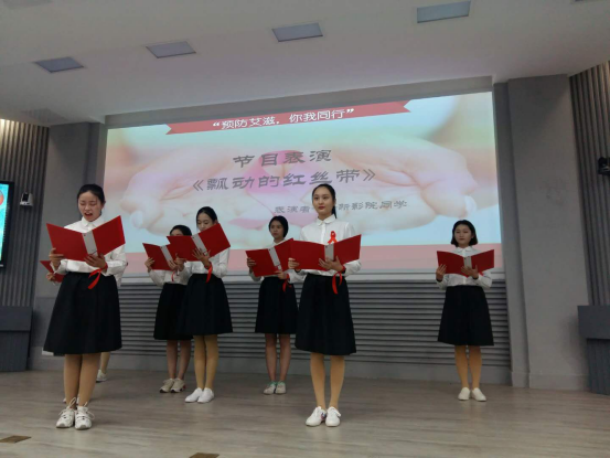 本次启动仪式,充分调动了大学生志愿者参与防艾宣传活动的积极性,启动仪式由tapplay同伴教育同盟协会会长李红娟担任主持,学生代表许源涛宣读倡议书,大学生志愿者现场为领导和老师们佩戴红丝带,各学院学生代表在知识抢答赛中积极抢答,了解艾滋病的发病原理、传播途径和预防措施等,将会场气氛推向高潮。新闻传播与影视艺术学院的学生代表表演诗朗诵《飘动的红丝带》,更是助力了全场的气氛,通过配乐诗朗诵和舞蹈二合一的方式生动地表现了红十字会为防艾事业的无私奉献,以及青春学子对防艾的热情与活力。