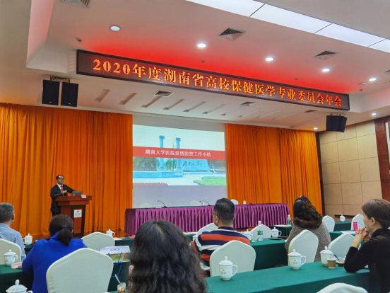 为做好高校艾滋病、结核病等传染病防控工作,进一步提升我省高校医疗机构管理与服务水平,推动高校医疗机构健康保障体系建设,2020年11月16日至17日,由湖南省高校保健医学专业委员会主办,湖南省卫生健康委健康教育宣传中心、湖南师范大学承办的"湖南省高校保健医学会2020年年会暨七届三次全体理事会"在长沙召开,我院院长彭欣辉、副院长桂建伟、公卫科副主任郑庭湖参加了会议。
