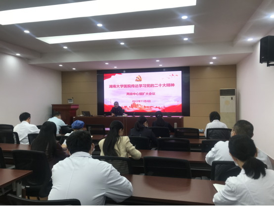 11月4日,校医院召开党总支理论学习中心组(扩大)会议,传达学习党的二十大精神,安排部署学习宣传贯彻相关工作。医院党总支书记张坤主持并宣讲,院领导班子、各科室主任、支部书记参加学习。