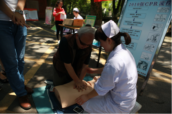 我们没有计算今天来学习的人数,只知道直到11:40还有人要求体验!我们的教练真的很累,但是,我们非常欣慰!我们传播了知识,学习过急救知识的人们不但学习了急救知识,还体会了救人者的辛苦!