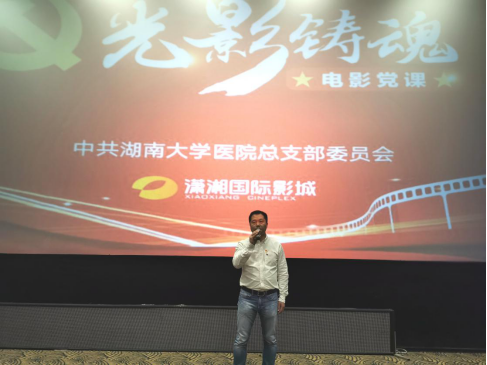 为深入学习贯彻落实习近平总书记考察湖南重要讲话精神,进一步巩固“不忘初心、牢记使命”主题教育成果,激发党员干部知史爱党、知史爱国的爱国主义热情,10月13日下午,校医院党总支开展“光影铸魂”电影党课主题活动。医院全体党员、入党积极分子等40余人走进潇湘国际影城,听电影制片人讲党课,重温总书记讲长征故事,观看红色电影《半条棉被》。